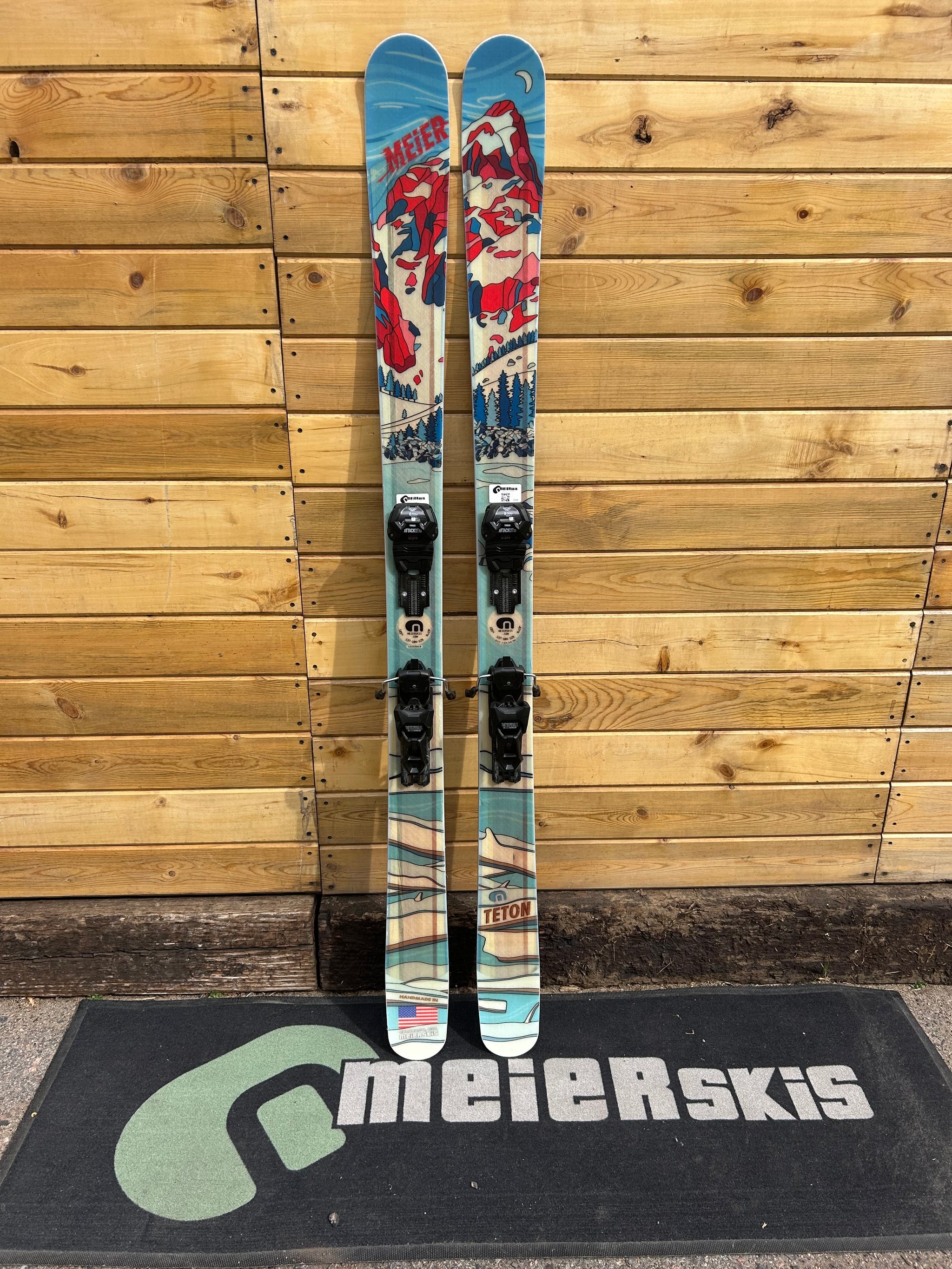 It is mounted with the Tyrolia Attack demo bindings, adjustable for your size boot by a qualified tech. This binding is GripWalk and Alpine compatible.